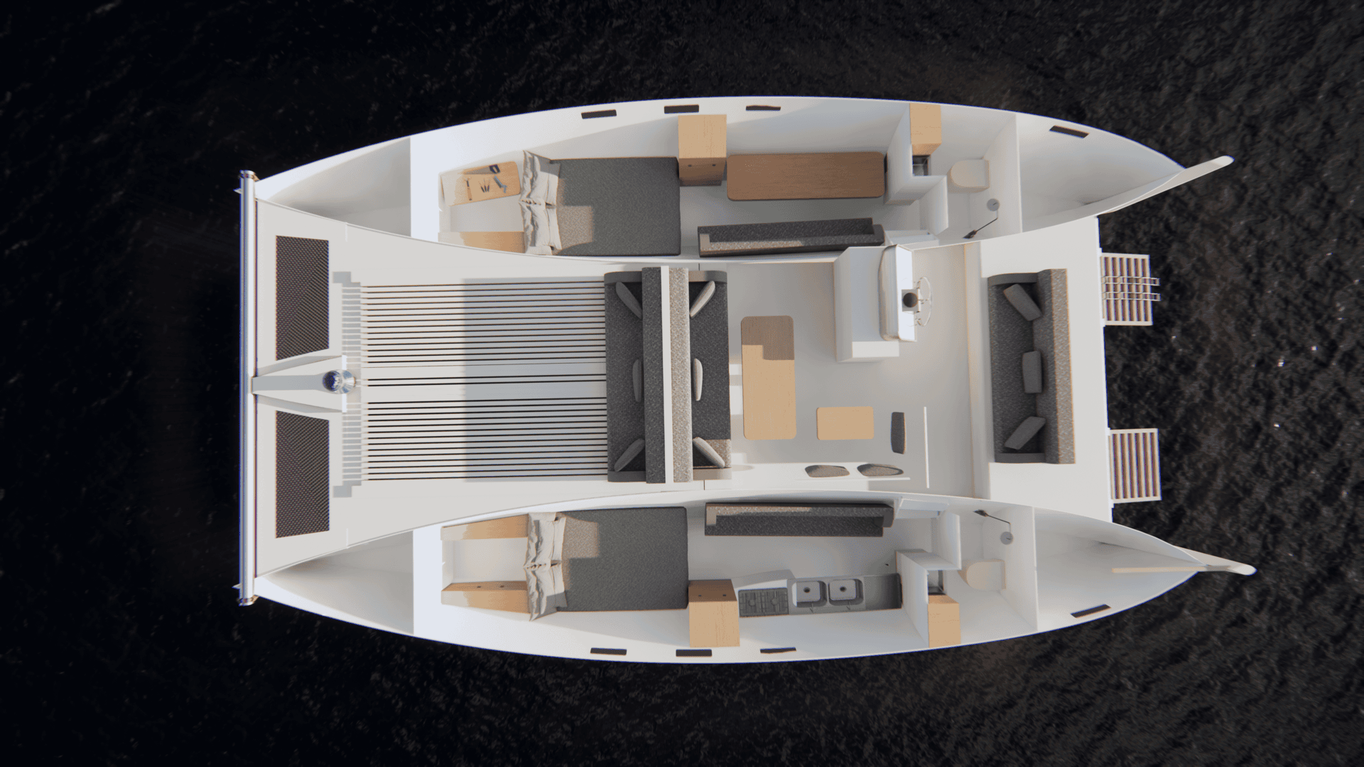 Tek direkli yapısı ve katamaran formuna özgü geniş iç alan oranıyla, benzersiz bir konfor ve yaşam alanı sunar. Tamamen rüzgar ve güneş enerjisiyle çalışan sistemleri, fosil yakıt ihtiyacını ortadan kaldırırken tüm yerleşik sistemleri sürdürülebilir biçimde destekler. Performansa, özgürlüğe ve çevreye duyarlı yaklaşımı benimseyen modern denizciler için ileri görüşlü bir çözümdür.